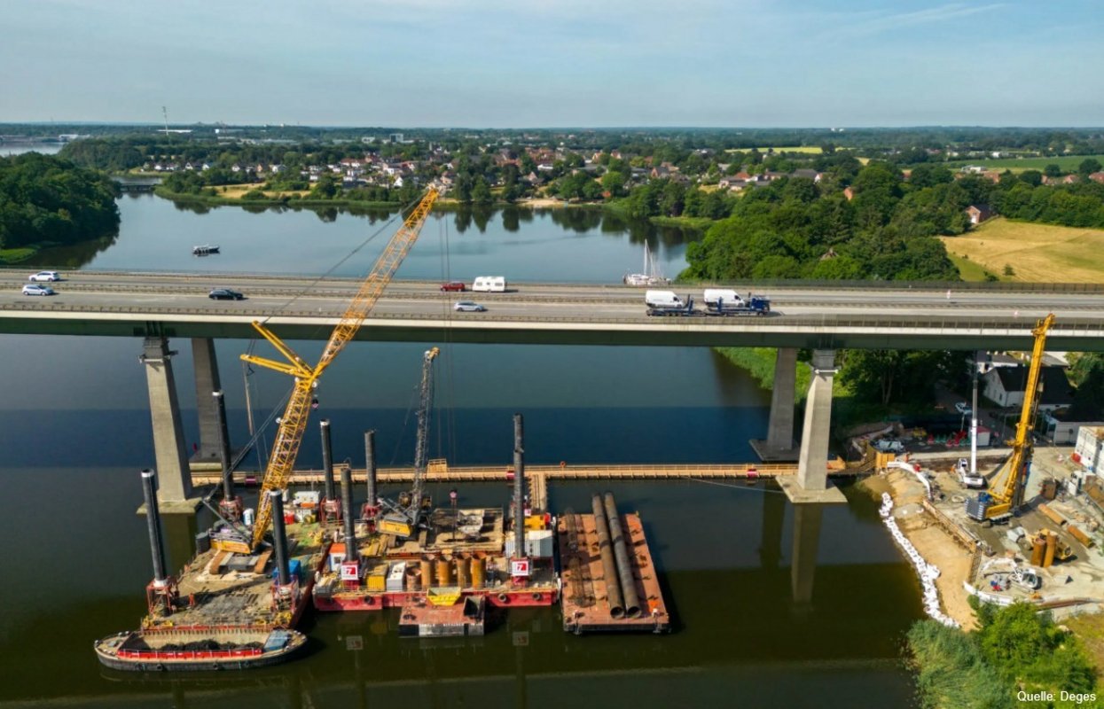 am 24.04.26 wird ein weiterer Abschnitt des nördlichen Kanalpfeilers (Standort Rader Insel) betoniert. Dazu werden in dem Zeitraum von ca. 07:00 Uhr bis 14:00 Uhr Betonfahrmischer von der L42 über den Tränkeweg auf die Rader Insel fahren. Aufgrund parallel laufender Arbeiten an der wasserseitigen Böschung des NOK´s ist die beschriebene Andienung erforderlich. Wir bitten um Ihr Verständnis.