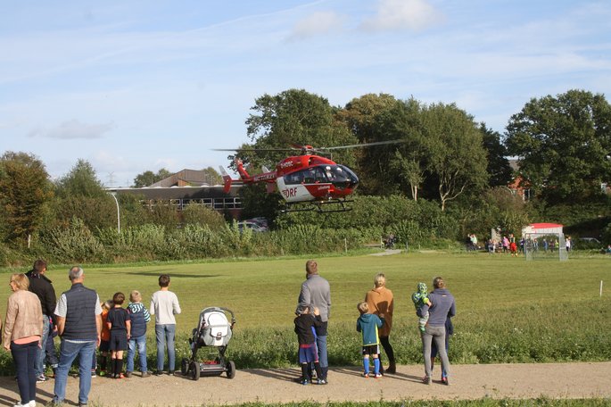Im östlichen Teil ist ein Bolzplatz mit mobilen Toren. Er kann auch als Landeplatz für den Rettungshubschrauber genutzt werden, wenn dieser zu einem Einsatz in das Seniorenzentrum gerufen wird. Während der Eröffnungsfeier landete „Christoph 42“und war bald dicht umringt.