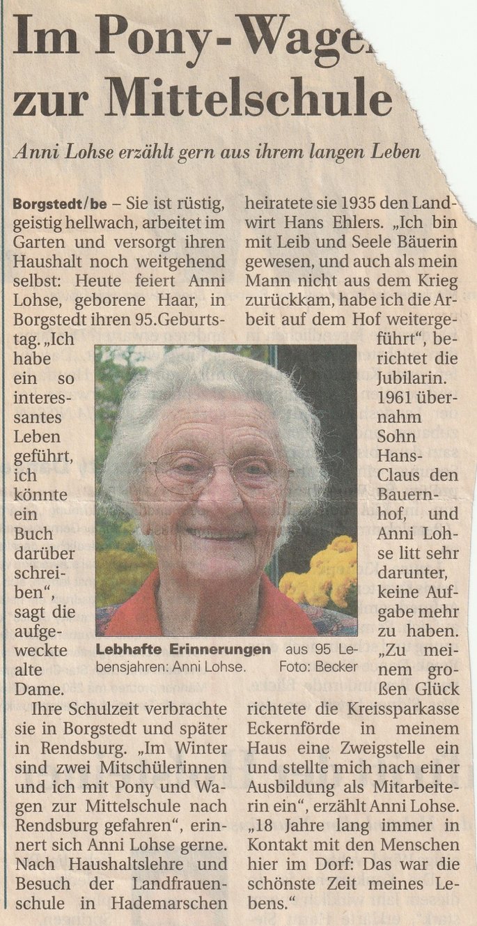 Frau Thea Sabel hat uns von ihrer Mutter einen interessanten Zeitungsausschnitt überlassen und uns auch das Tagebuch von "Anni" einsehen lassen. Sehen Sie selbst: