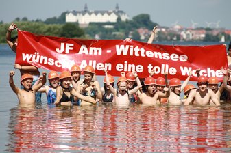 Durch den Zusammenschluß der Ämter Wittensee und Hütten wurde die Jugendfeuerwehr in Jugendfeuerwehr " Am Wittensee " umbenannt. Sie besteht aus 3 Zügen mit etwa 80 Jungen und Mädchen zwischen 10 und 18 Jahren.